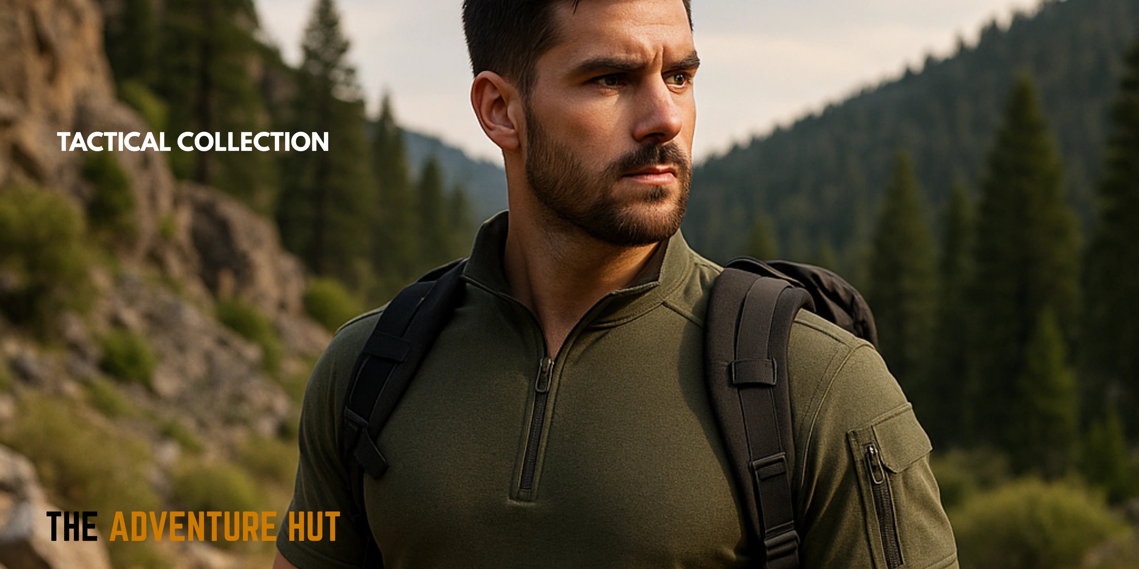ADVENTURE HUT TACTICAL ZIP T-SHIRT - DRY COOL PERFORMNCE WITH ZIP LOCK
